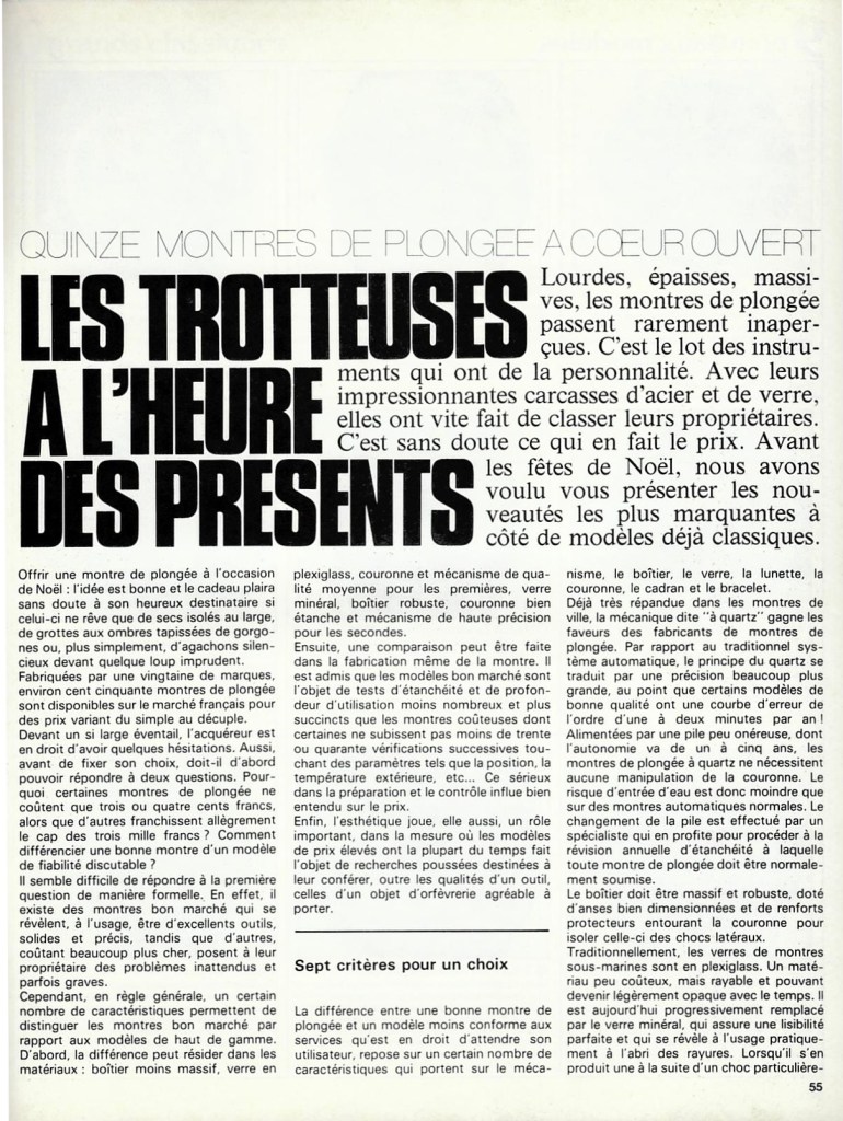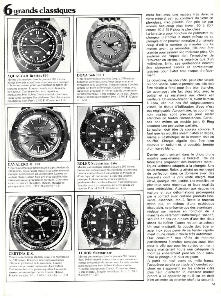Le magazine Océans, publiait régulièrement des informations sur le matériel de plongée, et notamment les montres.