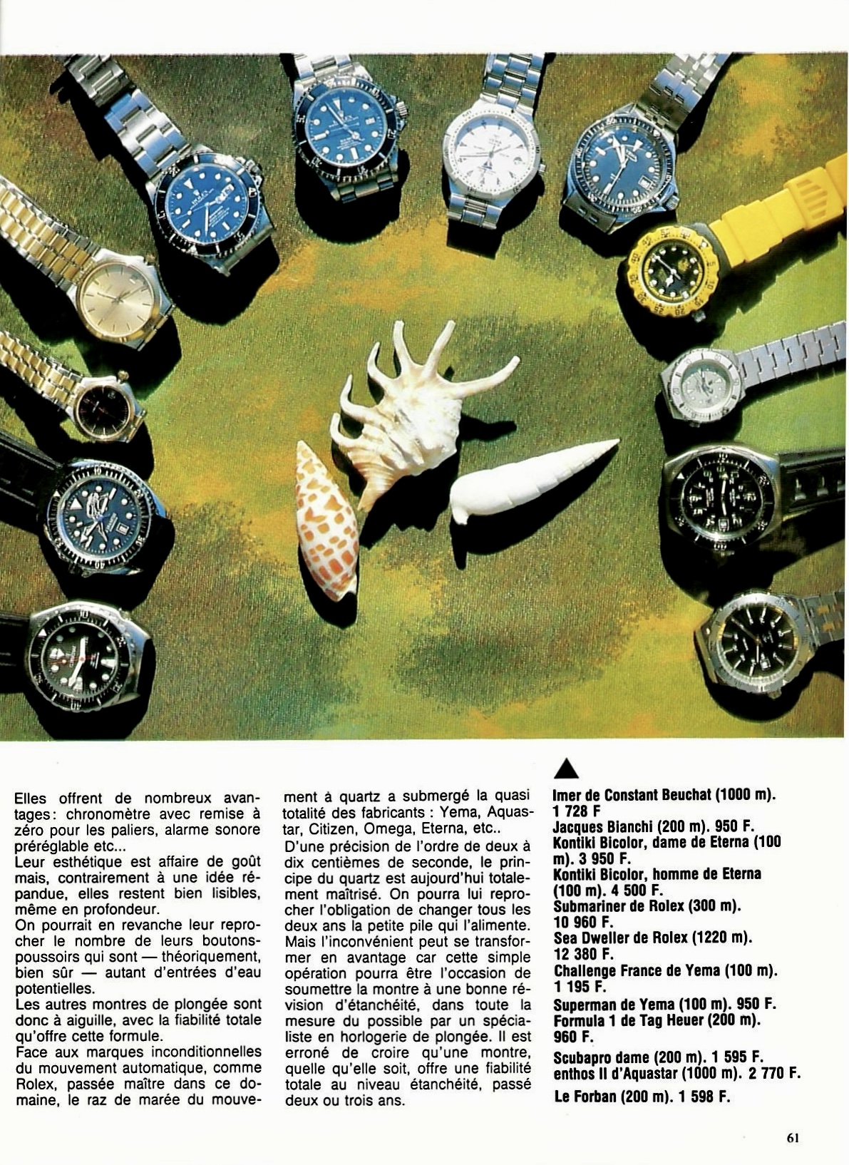 Je partage ici plusieurs anciens catalogues horlogers ou dossiers de magazines, principalement sur les montres de plongées.