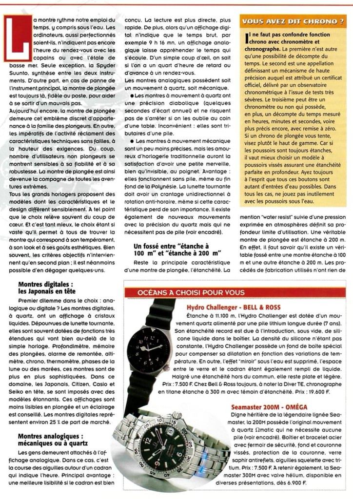 Plongée Magazine – Des montres à l’heure de la plongée