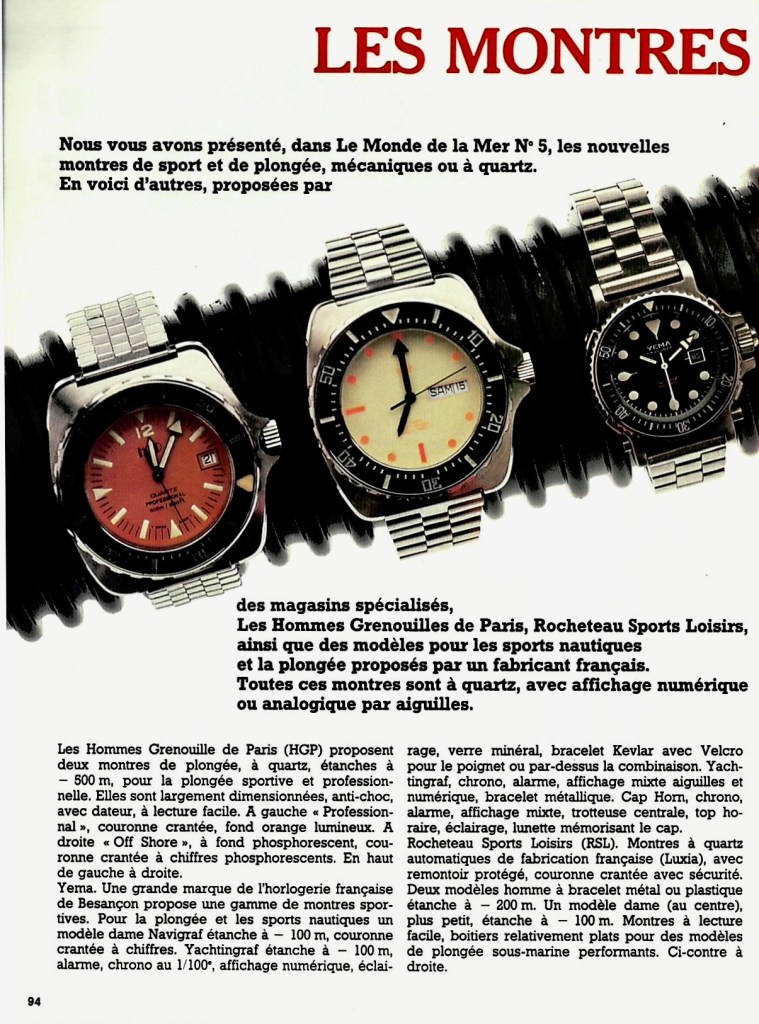 Nous vous avons présenté, dans Le Monde de la Mer N° 5, les nouvelles montres de sport et de plongée, mécaniques ou à quartz.