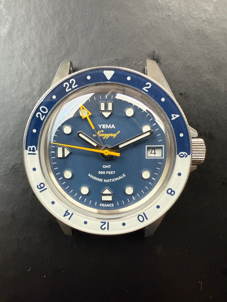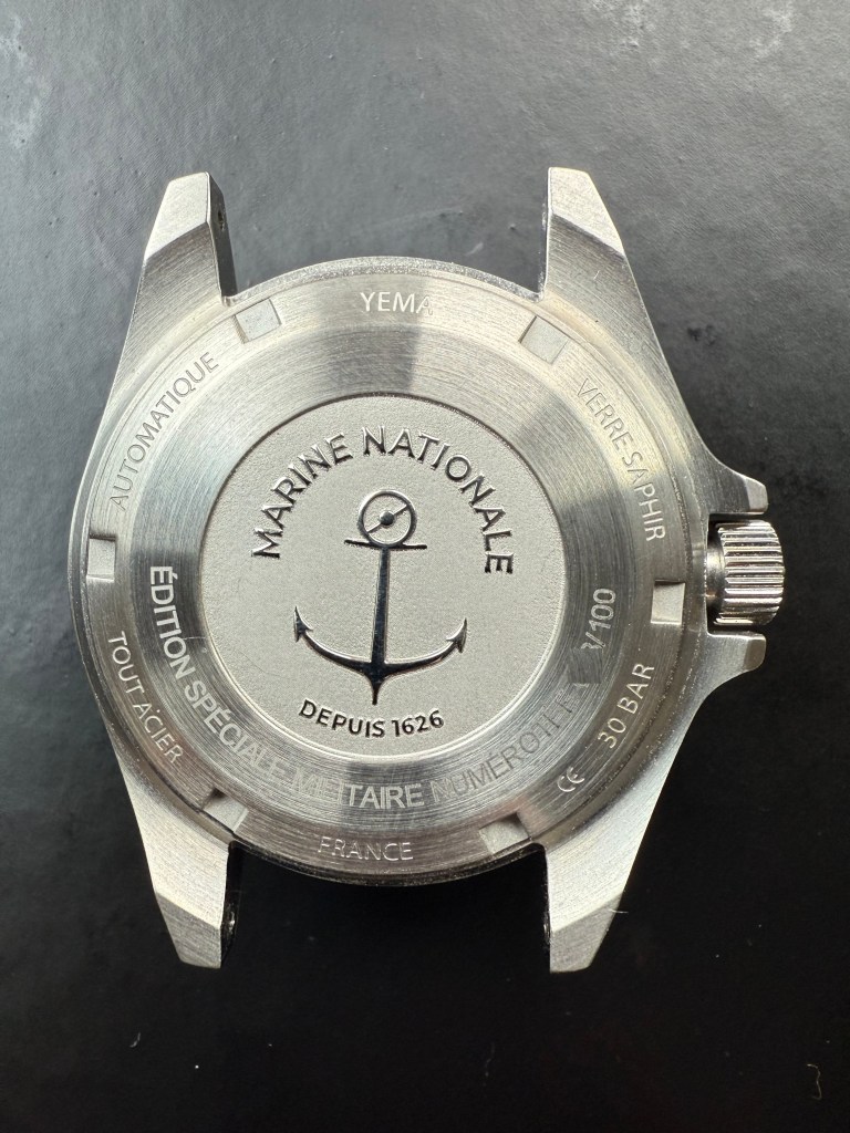 La Navygraf Marine nationale GMT a été conçue et développée conjointement avec la Marine nationale. Son cadran inspiré de la Navygraf II des années 1970, arbore les couleurs et l’inscription de la Marine nationale, l’ancre des galons embossée sur la couronne et une fonction GMT pouvant afficher jusqu’à 3 fuseaux horaires différents.