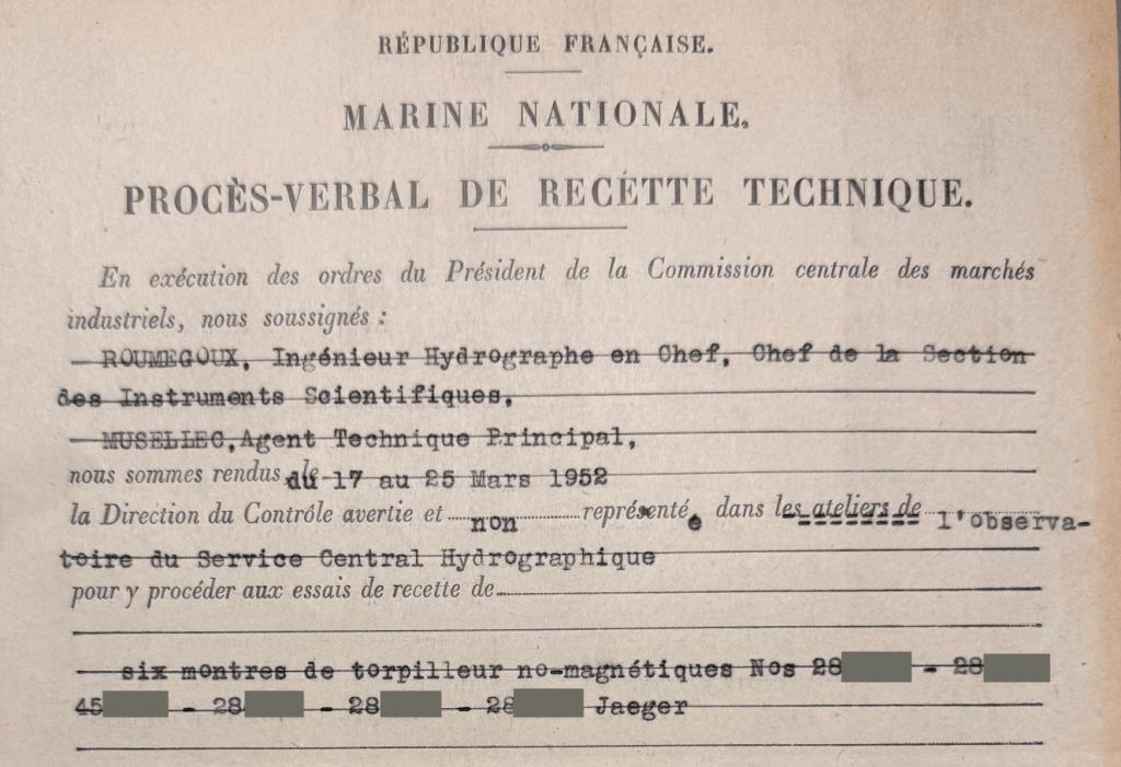En février 2025, j’ai réussi à identifier quelques archives permettant de retracer l’histoire de 6 montres de torpilleur no-magnétiques Jaeger à destination des bâtiments outre-mer. Voici un résumé et les copies de documents trouvés.