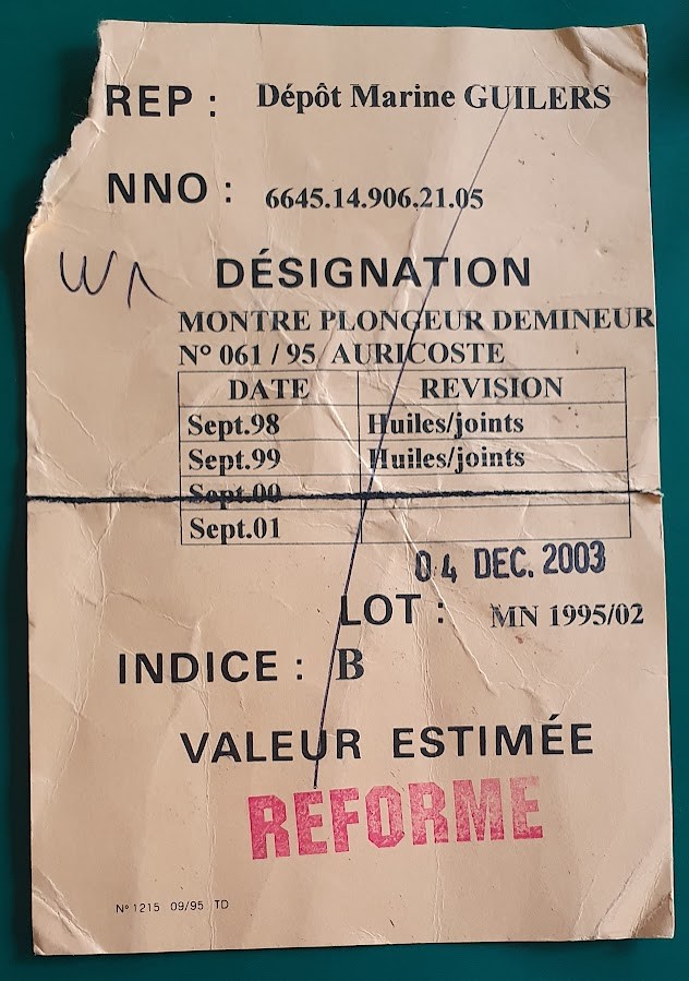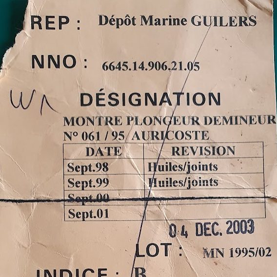 Cette montre était rattachée au dépôt de la Marine à Guilers (Finistère). Elle fait partie d’un lot de montres de février 1995.