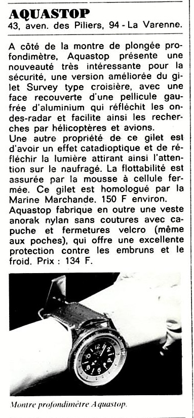 Ce modèle Aquastop est également mentionné dans le dossier spécial montres du même magazine en août-septembre 1969.