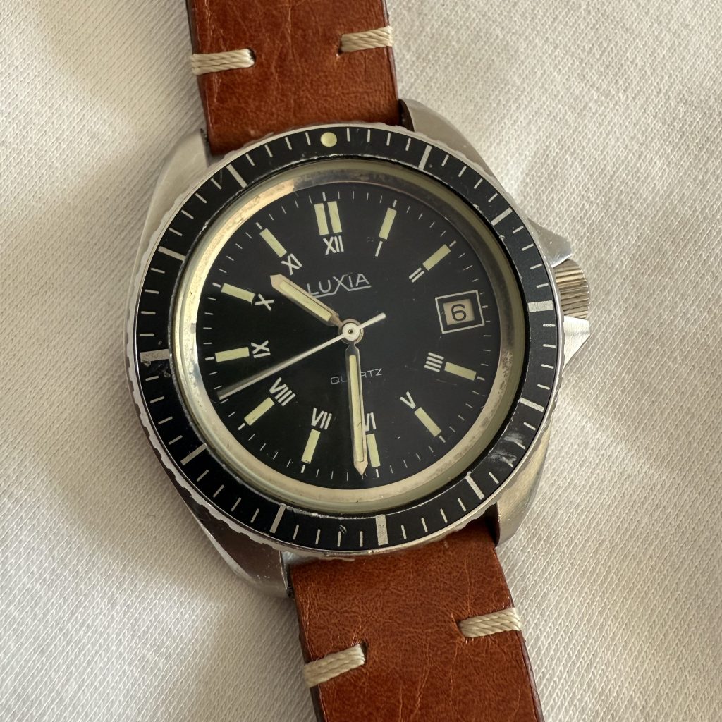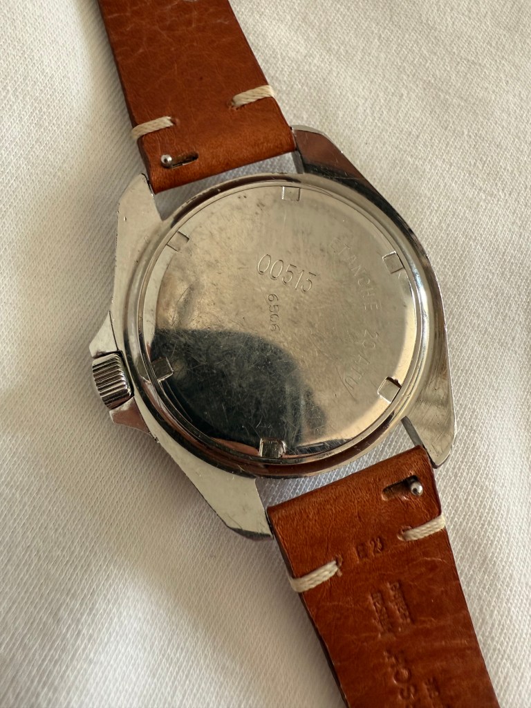 Je n’ai pas beaucoup d’informations sur ce modèle quartz, gravé 513, dont le numéro de série 6506. Le diamètre sans la couronne est de 39/40mm.